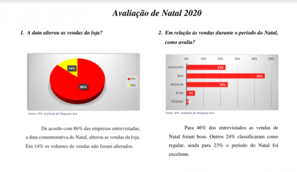 Por este motivo, o Instituto de Pesquisa Acir (IPA) realizou a pesquisa de avaliação de vendas com o comércio local para saber como foram as vendas no período de Natal de 2020.