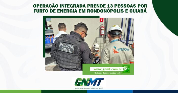 Uma operação conjunta entre forças de segurança pública e a Energisa resultou na prisão de 13 pessoas suspeitas de envolvimento em furto de energia elétrica. As ações ocorreram entre os dias 5 e 7 de novembro, em Rondonópolis e Cuiabá, e fazem parte de um trabalho contínuo de fiscalização em todo o estado.