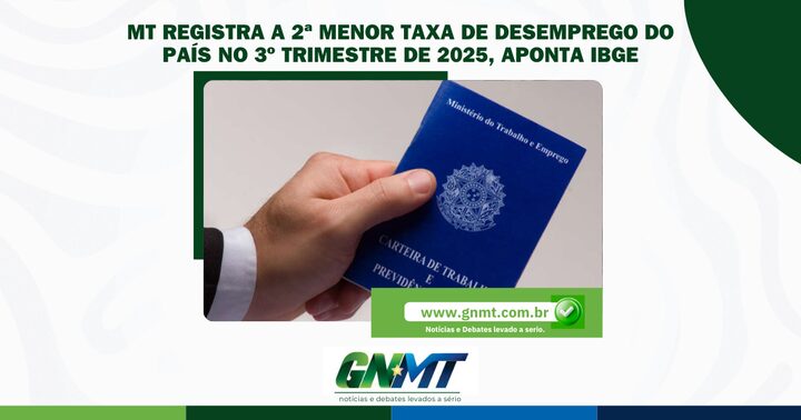 Mato Grosso encerrou o terceiro trimestre de 2025 com a segunda menor taxa de desemprego do Brasil, alcançando 2,3%, conforme dados da PNAD Contínua divulgados pelo IBGE nesta sexta-feira (14). O índice é o mesmo registrado em Santa Catarina. Na sequência aparecem Rondônia e Espírito Santo, ambos com 2,6%.