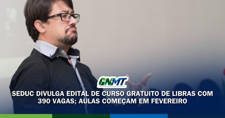 A Secretaria de Estado de Educação de Mato Grosso (Seduc-MT) divulgou o edital de abertura de um curso gratuito de Língua Brasileira de Sinais (Libras) que oferecerá 390 vagas para a formação básica. Os interessados poderão se inscrever em breve para participar da capacitação presencial, que começa em 23 de fevereiro de 2026 e segue até 26 de junho.