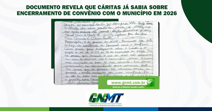 Um documento interno da Cáritas Diocesana, ao qual a reportagem teve acesso, confirma que a entidade foi informada ainda no início de 2025 sobre o encerramento do convênio com o Município para o ano letivo de 2026. Apesar disso, publicações divulgadas pela própria instituição nas redes sociais nesta semana afirmavam que não havia retorno da Prefeitura sobre a continuidade da parceria — informação que contradiz o conteúdo da ata.