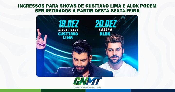 Ingressos para shows de Gusttavo Lima e Alok podem ser retirados a partir desta sexta-feira