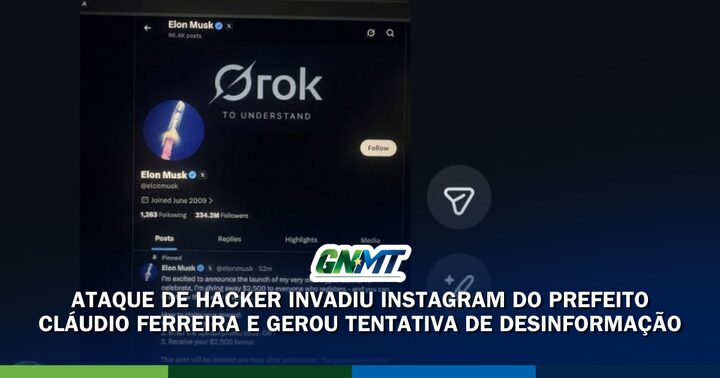 O perfil oficial no Instagram do prefeito de Rondonópolis (MT), Cláudio Ferreira, foi alvo de uma invasão por hackers, que promoveram uma tentativa de disseminar informações falsas por meio da rede social. O episódio foi identificado nas últimas horas e mobilizou a equipe de tecnologia da Prefeitura para ação imediata de recuperação e segurança da conta.