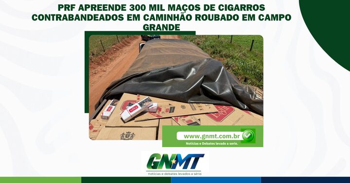 CAMPO GRANDE (MS) – Em uma operação de fiscalização realizada nesta quarta-feira (26), a Polícia Rodoviária Federal (PRF) apreendeu 300 mil maços de cigarros contrabandeados que eram transportados em um caminhão com registro de roubo e identificação adulterada. O motorista, que não possuía Carteira Nacional de Habilitação (CNH), foi detido e encaminhado à Polícia Federal.