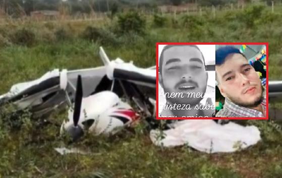 Aeronave de pequeno porte ficou totalmente destruída; jovens Gustavo Martins, 21 anos, e Matheus Buriola, 26, não resistiram