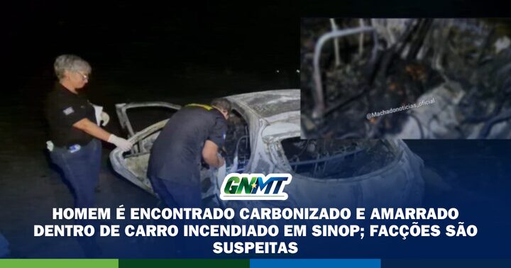 Homem é encontrado carbonizado e amarrado dentro de carro incendiado em Sinop; facções são suspeitas