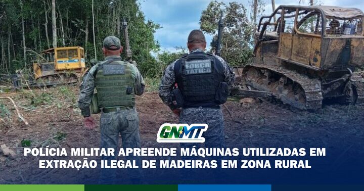 Equipes do Batalhão de Polícia Militar de Proteção Ambiental do 8º Comando Regional apreenderam dois tratores, uma escavadeira hidráulica e diversas toras de madeiras extraídas de maneira irregular, em uma propriedade rural localizada no município de Colniza-MT.