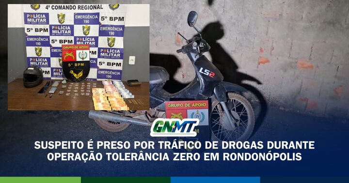 Um homem foi preso por tráfico de drogas na noite desta terça-feira (3), durante a Operação Tolerância Zero às Facções Criminosas, realizada pela Polícia Militar do Estado de Mato Grosso, por meio do 4º Comando Regional e do 5º Batalhão da PM, em Rondonópolis.