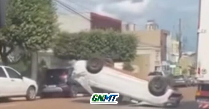 Um carro capotou após provocar um acidente no cruzamento da Avenida Rio Branco com a Avenida Dom Wunibaldo, na região central de Rondonópolis. A colisão aconteceu na tarde desta sexta-feira (13) e foi registrada por câmeras de segurança e por pessoas que passavam pelo local.