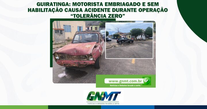 Um motorista sem habilitação e sob efeito de álcool provocou um acidente na tarde deste domingo (16/11), na zona urbana de Guiratinga, durante ação da Polícia Militar na operação Tolerância Zero às Facções Criminosas. A ocorrência foi registrada por volta das 15h15.
