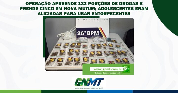 Policiais militares do 26º Batalhão prenderam cinco pessoas e apreenderam 132 porções de entorpecentes durante a Operação Tolerância Zero, realizada neste domingo (16), em Nova Mutum-MT. A ação revelou situações de alto risco: em uma das abordagens, os militares encontraram duas adolescentes de 16 anos em uma casa que funcionava como ponto de venda de drogas, onde, segundo elas, foram convidadas para consumir entorpecentes e bebidas alcoólicas.