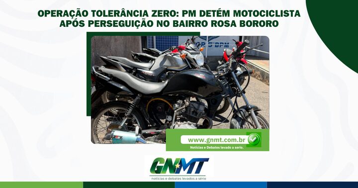 A Polícia Militar prendeu na manhã desta quinta-feira (20), por volta das 11h, um motociclista no bairro Rosa Bororo, em Rondonópolis, após uma perseguição que colocou pedestres e motoristas em risco. A ação faz parte da Operação Tolerância Zero às Facções Criminosas, realizada pelo 5º Batalhão do 4º Comando Regional.