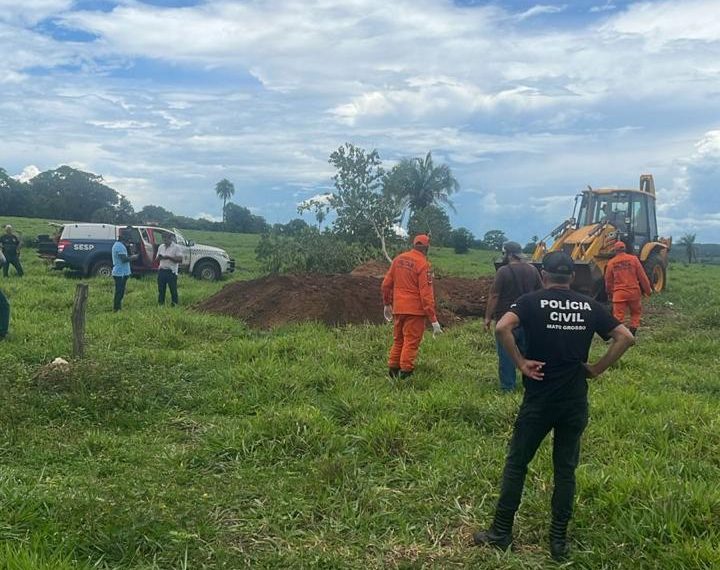 A Polícia Judiciária Civil desenterrou, na manhã desta sexta-feira (30), um corpo a aproximadamente quatro metros de profundidade em um poço de propriedade rural na região do Campo Limpo, zona rural de Rondonópolis. A descoberta macabra é o ponto culminante de uma sequência violenta de crimes que assola o município desde o último sábado (24).