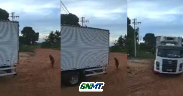 Imagens de câmeras de segurança registraram o momento em que um caminhão realizava uma manobra de ré e acabou atingindo a vítima.